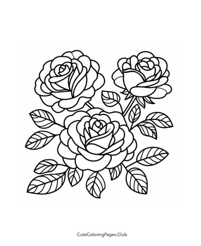 Open Rose Flower Coloring Sheets