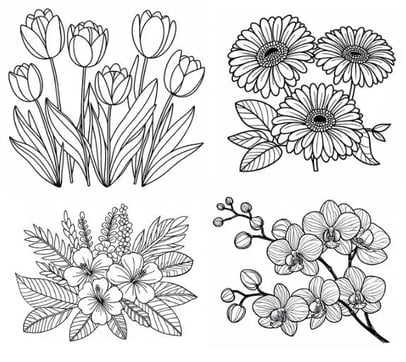 We offer seven different free printable coloring pages featuring beautiful flowers for a delightful coloring experience. Whether your kids are in various age groups, there's sure to be a page tailored for each of them!